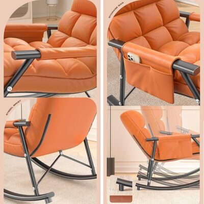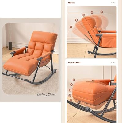 - ✅【هيكل مريح】استمتع بالراحة القصوى مع الهيكل المريح للكرسي الهزاز الخاص بنا. مسند الظهر قابل للتعديل بخمسة تروس لتلبية احتياجاتك المختلفة. يضمن الشكل الناعم والجميل بشكل عام، إلى جانب 8 تروس قابلة للتعديل على القدم الأمامية، الدعم الأمثل الذي يتوافق مع منحنى جسمك. كرسي هزاز مثالي للاستخدام الداخلي لتجربة استخدام ممتعة.