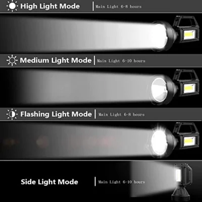 ??يوفر هذا المصباح الأمامي المحمول 4 أوضاع إضاءة عالية ومنخفضة وضوء طوارئ ومصباح جانبي كاشف. وفقًا لاختيارك من الأوضاع المختلفة،??