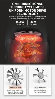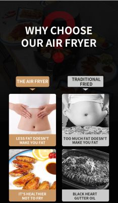 ?توفر المقلاة الهوائية بسعة 6 لتر وقوة 2400 واط قليًا سريعًا ومريحًا وتستخدم طاقة أقل من المقالي التقليدية.