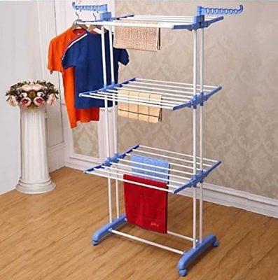 منشر غسيل 3 ادوار قابل للطي هو عبارة عن منشر يساعدك في نشر الملابس لتجفيفها مكون من ثلاث مستويات لحمل أكثر عدد من الملابس وليتحمل الأوزان الثقيلة مثل: البطاطين والكوفرتات، والجواكيت، كما أنه مزود بأرفف معدن اروستاتيك مقاوم للرطوبة وغير قابلة للصدأ، ومزود بعجلات حتى تقوم بتحريكه بسهولة من مكان لمكان وأيضًا مزود بشماعات من الجانبين لتعليق الملابس والبدل دون تكسير او كرمشة، ويمكن طيه وتخزينه في أي مكان لتوفير المساحة بالإضافة إلى ان سعر منشر الغسيل الثلاث أدوار مناسب للجميع.