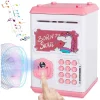 يمكن تخزين 600 قطعة من العملات المعدنية أو 100 قطعة من النقود الورقية. 10 أغاني مدمجة لموسيقى الأطفال مثل Voice Clock ، قم بتشغيل الموسيقى تلقائيًا عند توفير المال. صندوق الأموال الآمن بكلمة مرور : أدخل كلمة المرور الأصلية الأربعة (الافتراضي: 0000. كلمات مرور قابلة للتغيير كما تريد. يعد وضع ATM مع كلمة المرور طريقة جيدة لتعليم الأطفال كيفية استخدام أجهزة الصراف الآلي وضوء الأشعة فوق البنفسجية للتحقق من النقود الورقية.