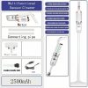 - ?【بطارية ليثيوم مدمجة بقوة 2000 مللي أمبير في الساعة: تحتوي المكنسة الكهربائية اللاسلكية المحمولة على بطارية ليثيوم مدمجة بقوة 2000 مللي أمبير في الساعة، والتي توفر الكثير من الطاقة لجلسات التنظيف الممتدة. لا داعي للقلق بشأن نفاد البطارية في منتصف عملية التنظيف، ويمكن إعادة شحن البطارية بسرعة بواسطة كابل USB المرفق.